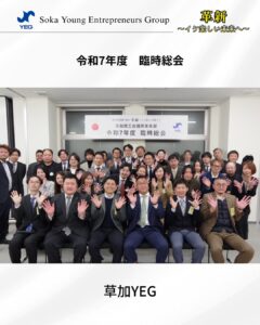 「YEG」(若き企業家集団)とは商工会議所青年部の英語名(Young Entrepreneurs Group)の頭文字をとったもので、商工会議所青年部の持つコンセプト(若さ、情熱、広い視野)を持った経営者=Youth,Energy,Generalist を表しています。